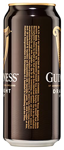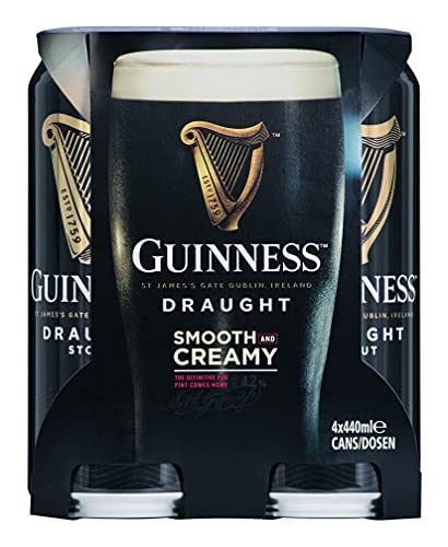 Guinness Draught 6x4x440ml Dose, wird gebraut mit feinsten Zutaten, wie der eigens gerösteten Gerste und der original Guinness Hefe. Es ist mild und vollmundig im Geschmack mit deutlichen Röstmalzaromen und Noten von Kaffee und Schokolade. Draught bedeutet übrigens „vom Fass “ und bringt frisch gezapftes Guinness nach Hause. Verantwortlich ist eine kleine weiße Kugel in der Dose, das „ Widget” Das weltberühmte Guinness-Widget basiert auf einer genialen Kunststoffkapsel, in der Stickstoffgas enthalten ist. Beim Öffnen der Dose wird dieses freigesetzt und aufsteigende Gasbläschen werden erzeugt.“ Guinness steht aber nicht nur für köstliches Aroma und einzigartigen Geschmack, sondern auch für Brautradition, Leidenschaft und Qualität- seit über 260 Jahren. Wie kein anderes Bier verkörpert Guinness das typisch irische Lebensgefühl und ist weltweit eine der bekanntesten Biermarken.
