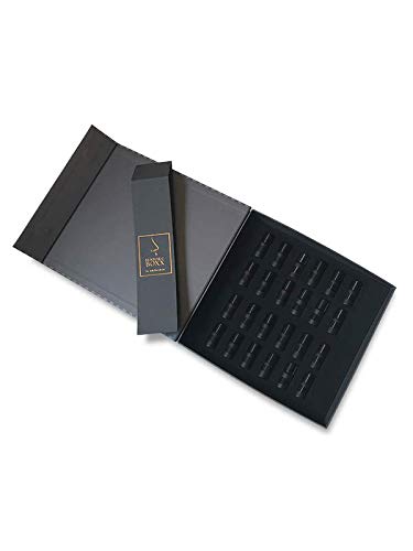 Kombiset für Fortgeschrittene. Die AROMABAR der Weindüfte umfasst die wichtigsten Aromen, die im Wein vorkommen. Fruchtige Aromen wie Pflaume und schwarze Johannisbeere, pflanzliche Aromen wie grüne Paprika, würzige Aromen wie Vanille oder Pfeffer sowie Röstaromen wie Kaffee oder Karamell. Jedes Aroma ist in einem formschönen Glasflakon mit Schraubverschluss und Auslaufschutz sicher verwahrt. Mit dieser 24er AROMABAR trainieren Sie Ihre Weinnase für alle Rot- und Weißweine. Mit den AROMABAR Weindüften lernen Sie, die im Wein vorkommenden Duft- und Geschmacksstoffe zu erkennen. So werden sie mit der Zeit und ein bisschen Übung Rebsorten, Weinanbaugebiete unterscheiden lernen, sowie ihre Weine beurteilen und klassifizieren können. Vergleichen sie das Bouquet des Weins mit dne Aromen aus den Flakons. Sie werden sehen, wie leicht sie ihre Nase trainieren können.