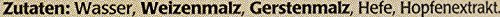 Zutaten: Wasser, WEIZENMALZ, GERSTENMALZ, Hefe, Hopfenextrakt