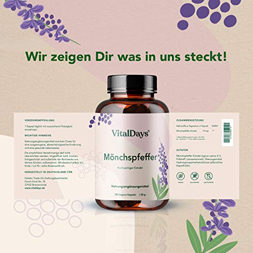 Specification: VitalDays Monk Pepper – 180 Capsules – Original Vitex Agnus Castus – 10 mg Extract per Capsule – Vegan – Made in Germany + Free E-Book